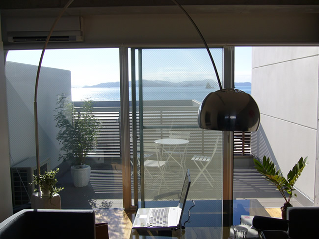 そこにこの場所がぴったりでした。潮騒の優しい調べに抱かれながら、今日も楽しい打合せが始まります。